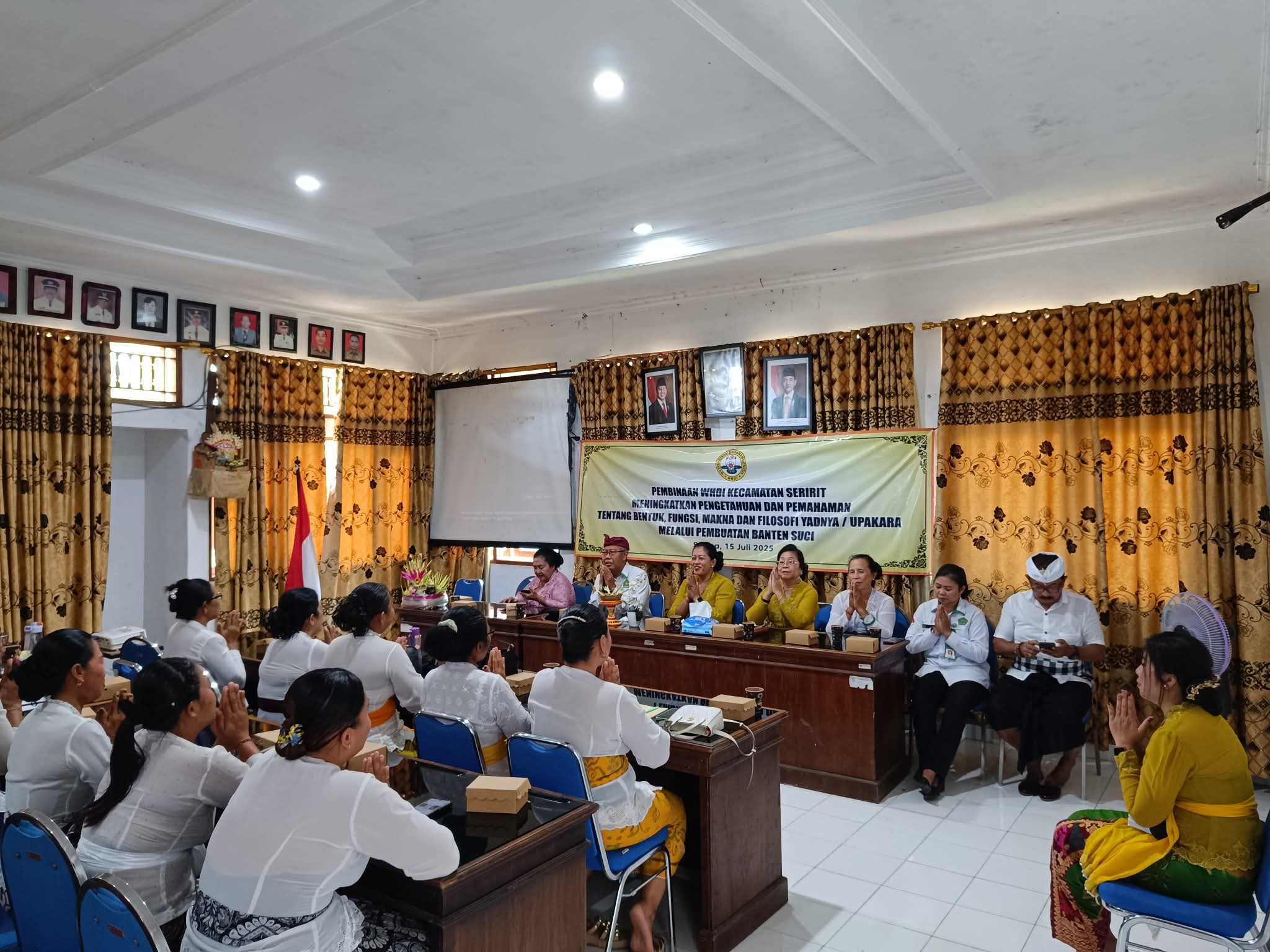 Pada pertemuan yang bertema "Meningkatkan Sradha Bakthi melalui praktek pembuatan Banten Suci", WHDI Kecamatan Seririt malaksanakan pelatihan pembuatan Banten Suci bersama WHDI Desa/Kelurahan se- Kecamatan Seririt dan pelatihan dibuka oleh Sekretaris Camat Seririt, Luh Sri Adnyani, SH. yang bertempat di ruang rapat Kantor Camat Seririt