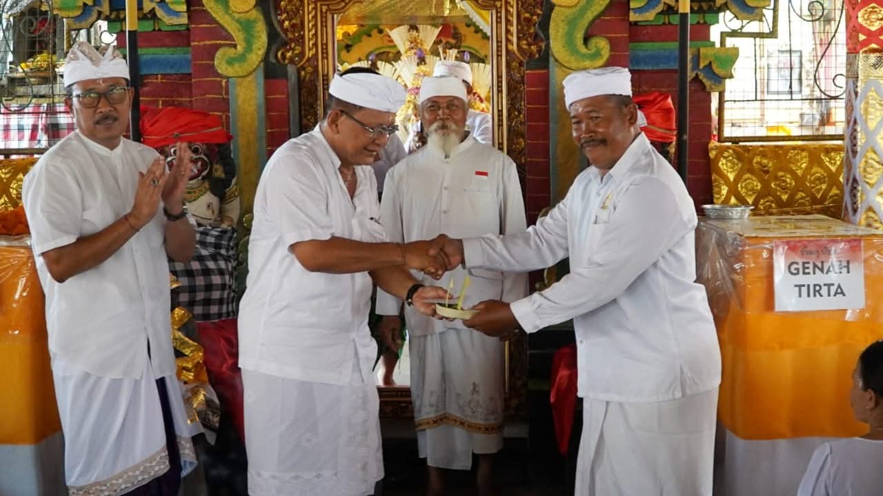 Pada kesempatan itu pula Bupati Sutjidra menyerahkan punia yang diterima Kelian Desa Adat Sumberkelampok.