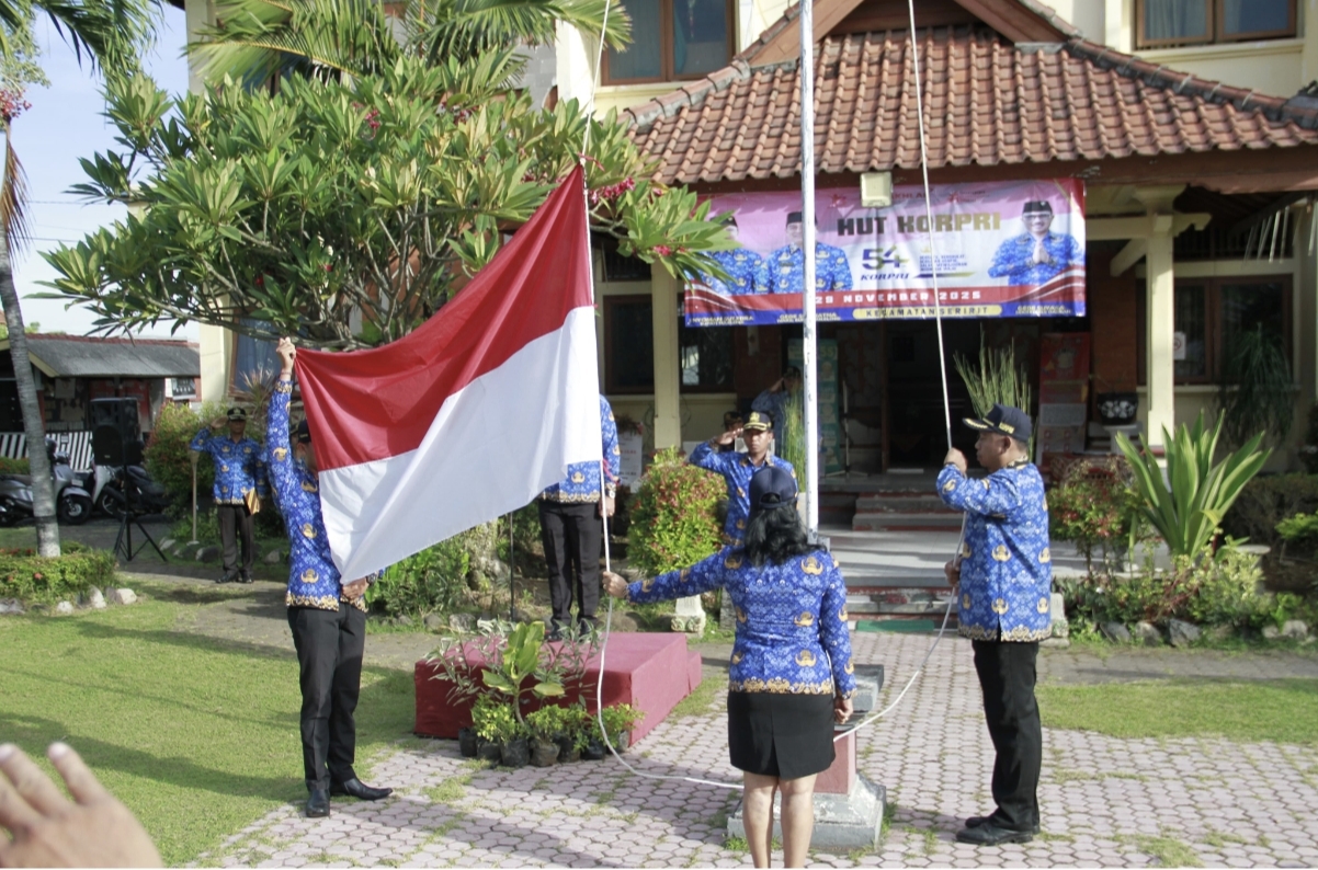 Camat Seririt I Putu Satriawan,SH.,MH. sebagai pembina upacara pada peringatan Hari Ulang Tahun ke-54 Korps Pegawai Republik Indonesia (KORPRI) Tahun 2025, yang digelar di halaman Kantor Camat Seririt, dengan mengusung tema “Bersatu, Berdaulat, Bersama KORPRI, Dalam Mewujudkan Indonesia Maju”.