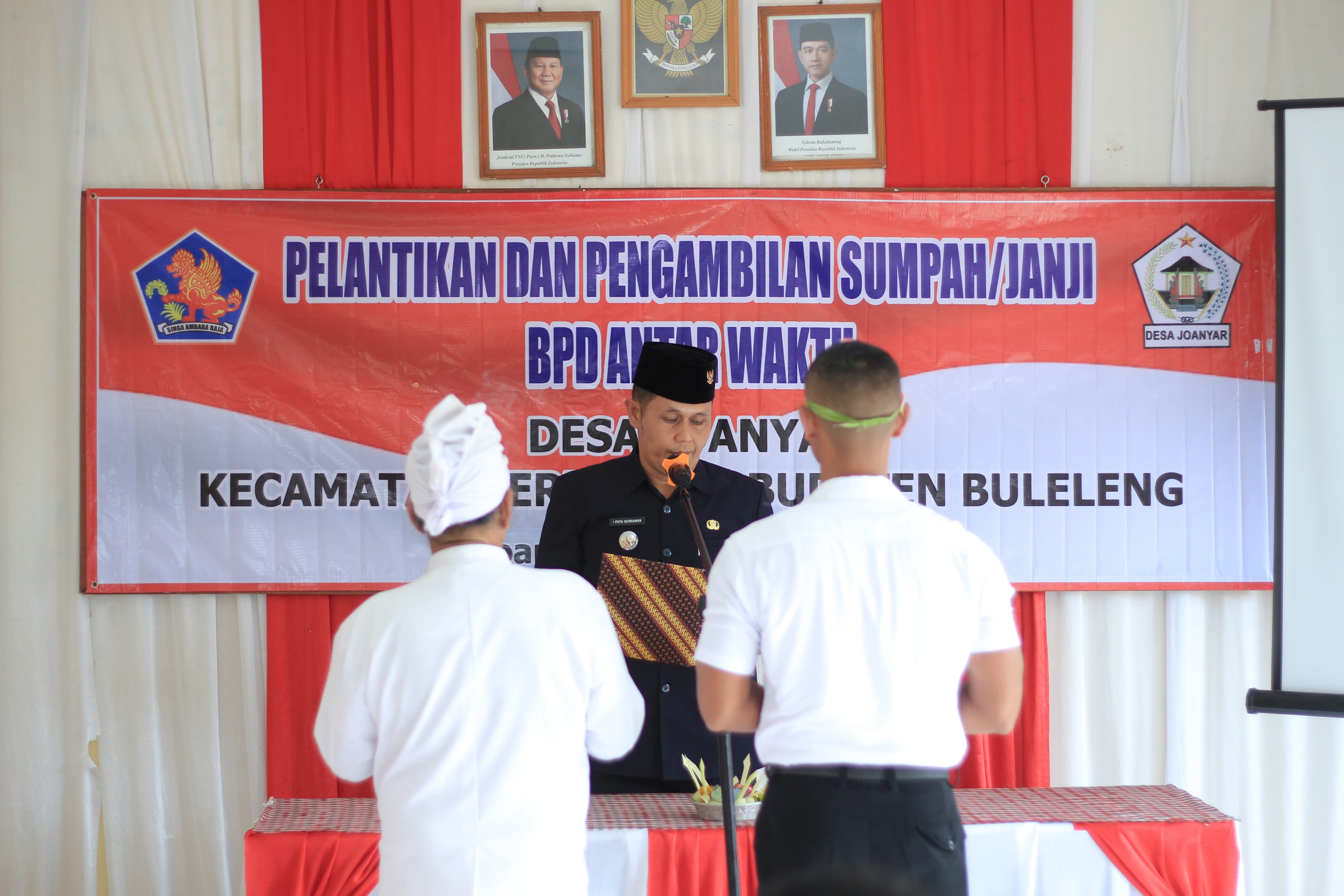 Acara ini dipimpin langsung oleh Perbekel Desa Joanyar, Nyoman Mas Nesa, dengan dihadiri  Camat Seririt I Putu Satriawan,SH.,MH. yang sekaligus melantik dan mengambil sumpah kepada Anggota BPD antar waktu.