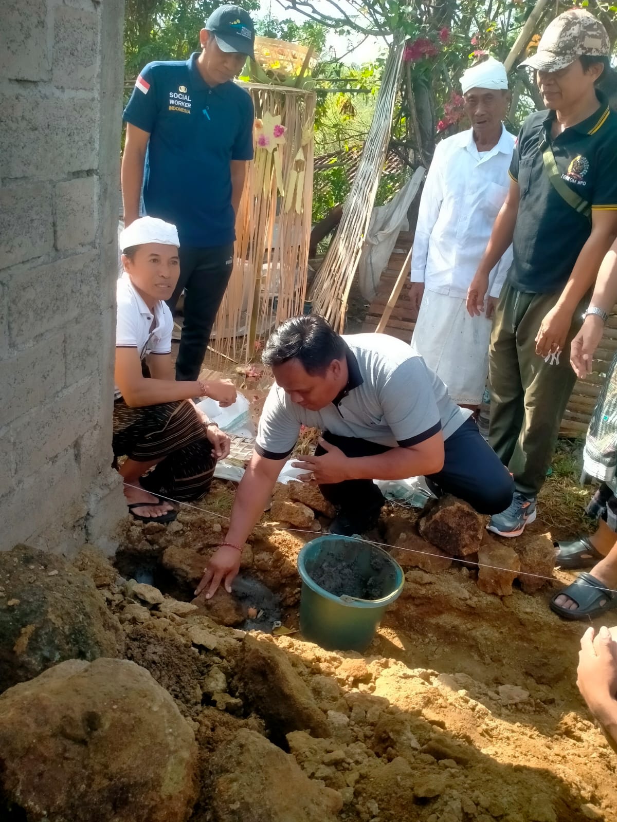 Peletakan batu pertama pembangunan rumah layak huni di Banjar Dinas Bada, Desa Mayong, Kecamatan Seririt, Kabupaten Buleleng, dilakukan sebagai bagian dari program pembangunan rumah tidak layak huni (RTLH).